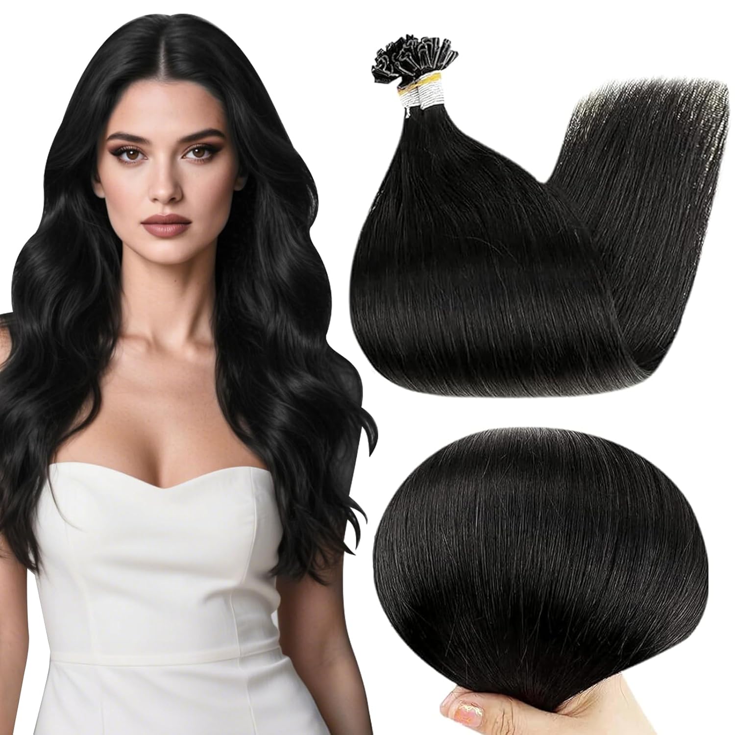 Full Shine U Tip Hair Extensions Human Hair – Jet Black #1 14 Inch Remy Keratin Fusion Hair Extensions (40g)